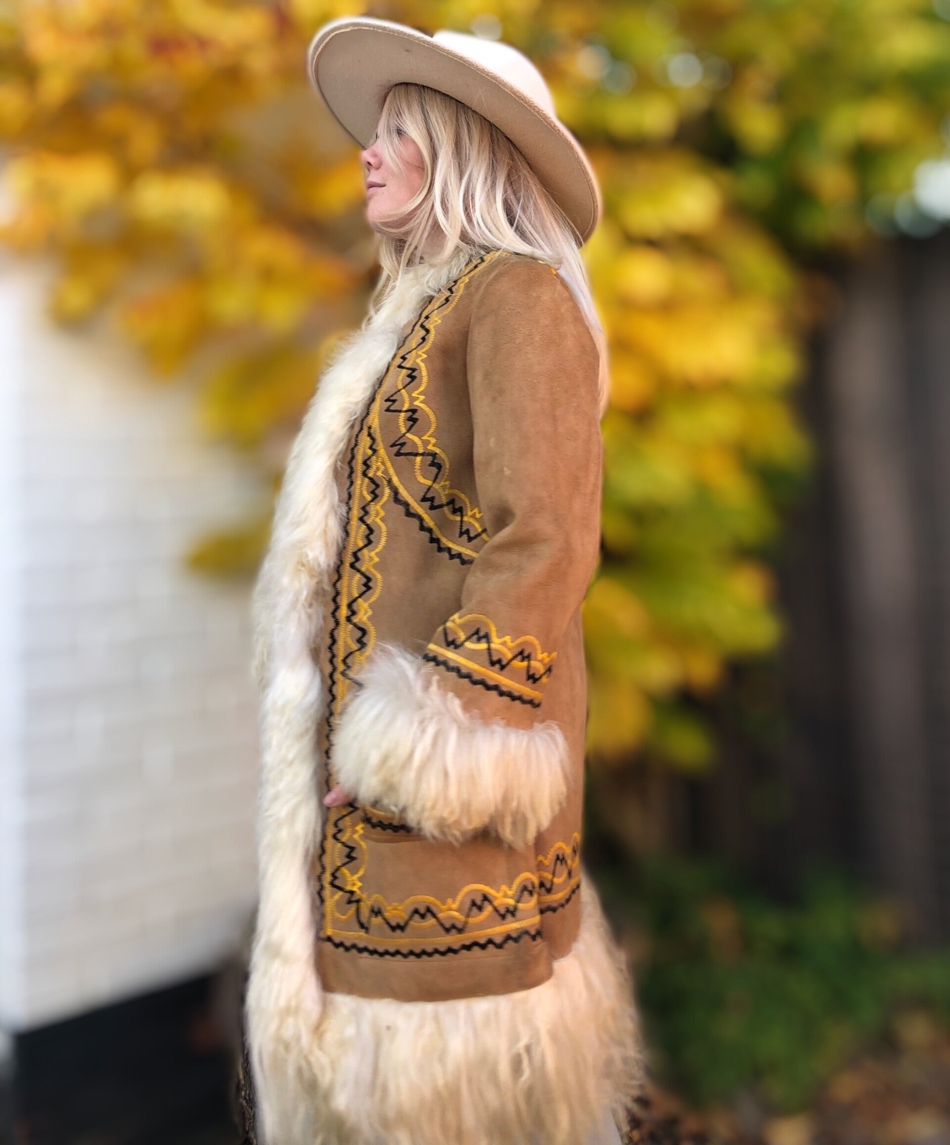 Stunning original vintage 1970s suède hand embroidered shearling coat 🤎