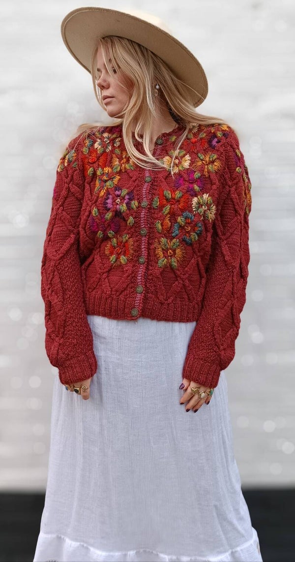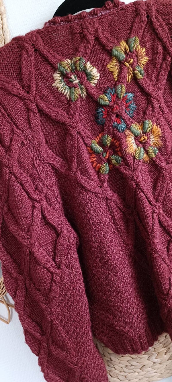 Every Wolkenstricker is fully hand-knitted, this model has beautiful hand embroidered details all over and removeabel shoulder pads! Of course it also has the traditional W buttons ✨.