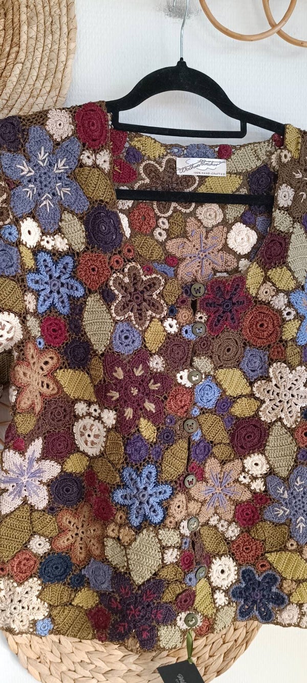 This model is crochet ( free hand technique ). Truly an amazing colour combination! Making it a real hippie model ✌🏼.