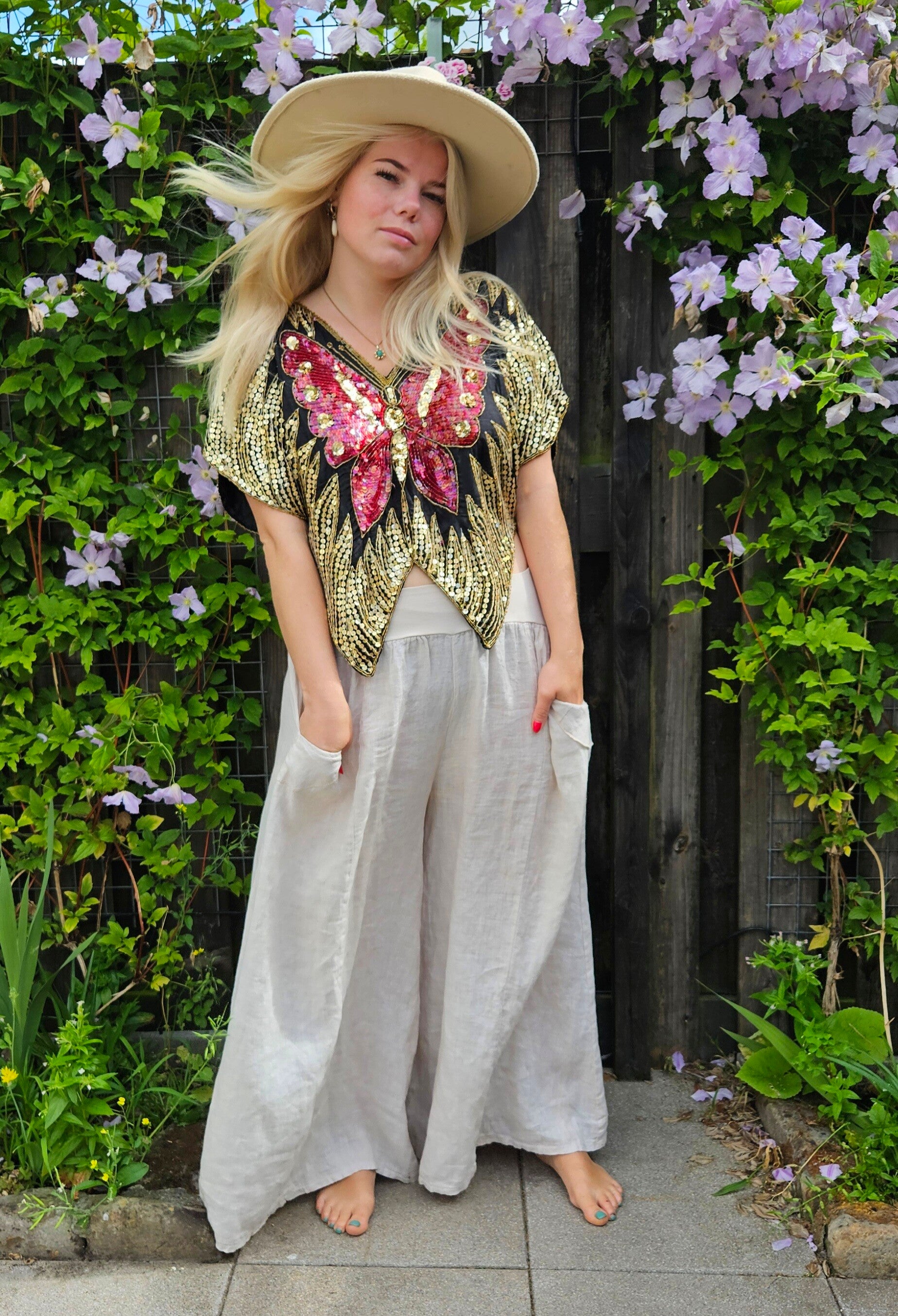 Vintage sequin silk butterfly top - free size