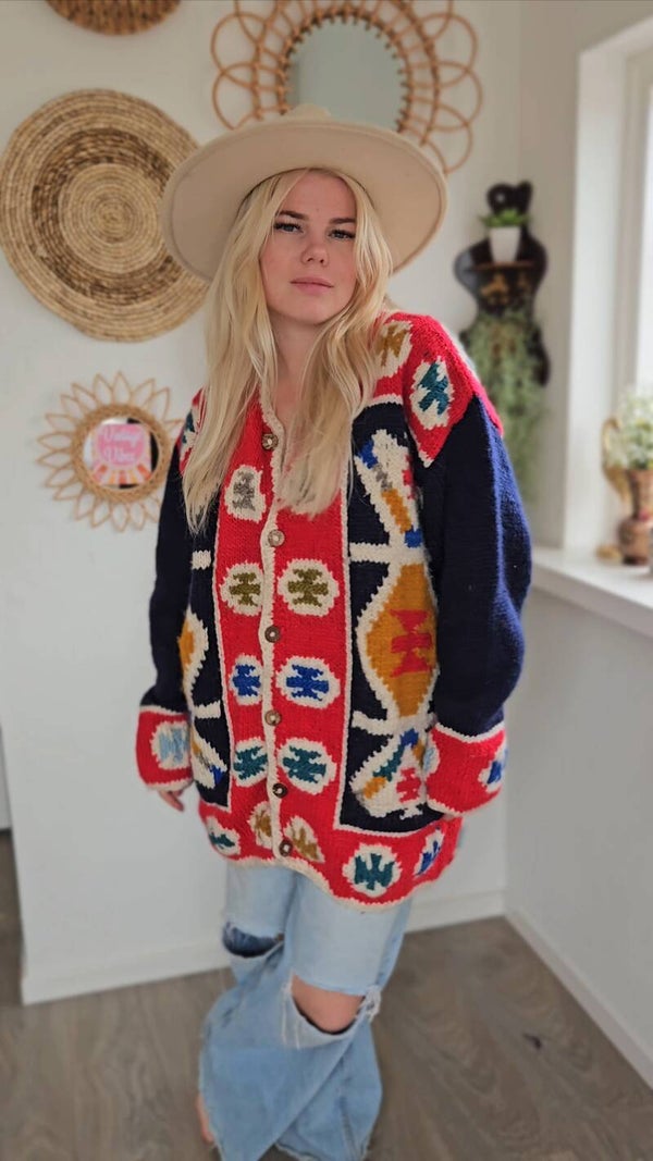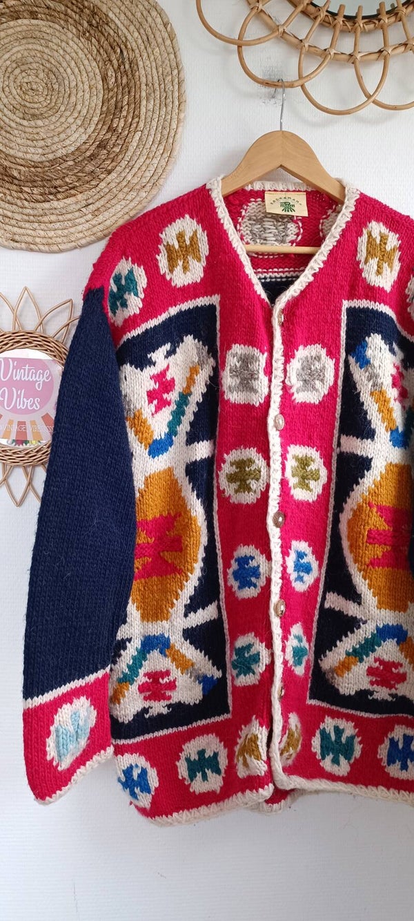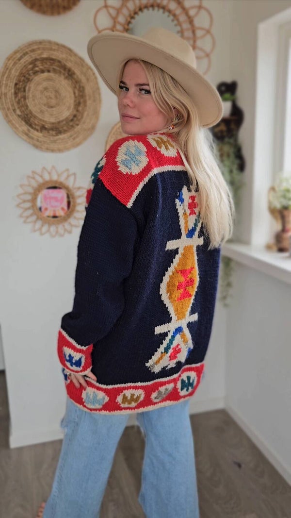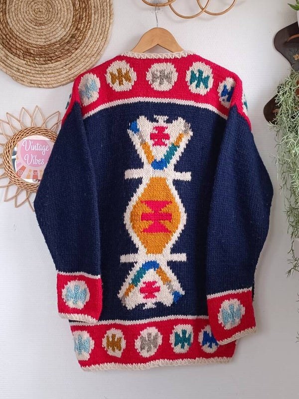 Vintage handknitted Pachamama woolen cardigan - size XL/XXL