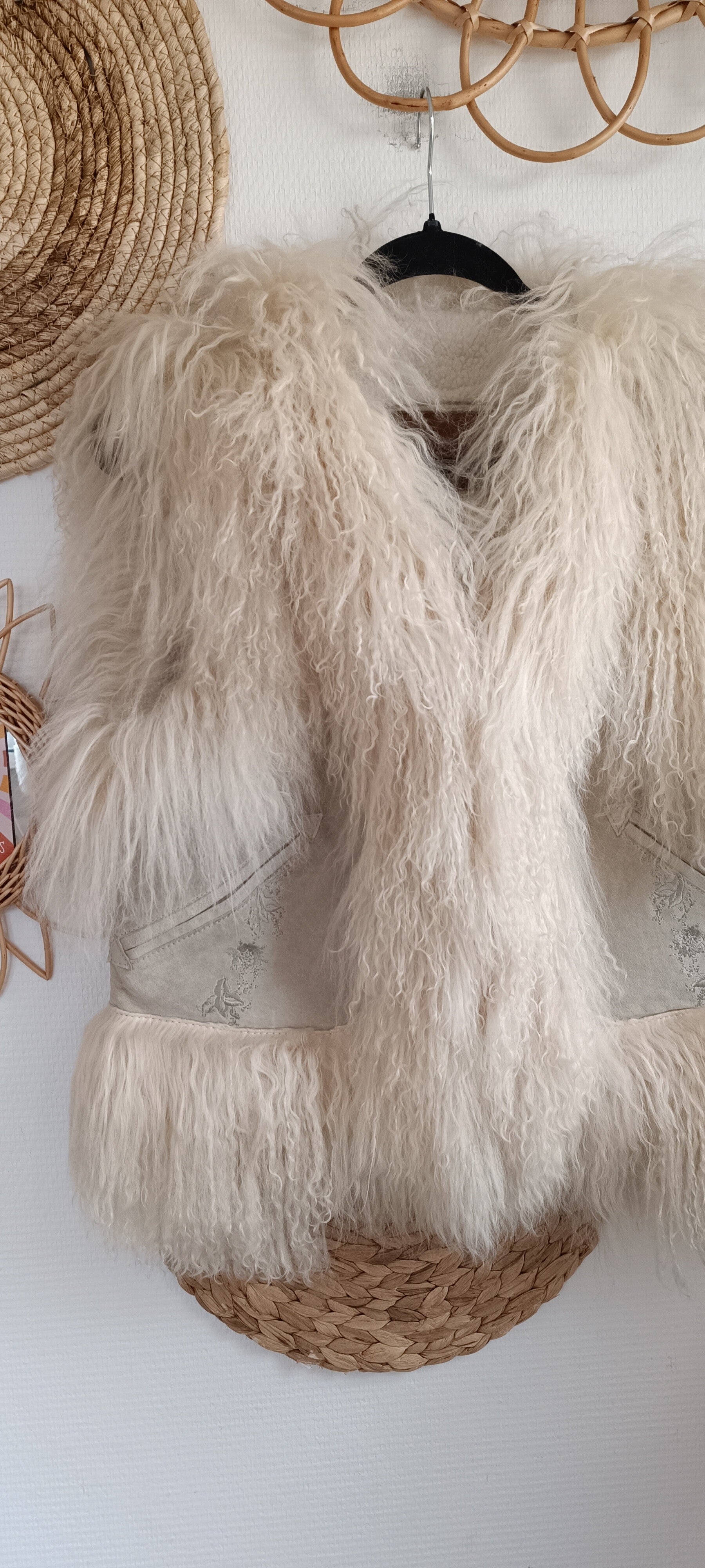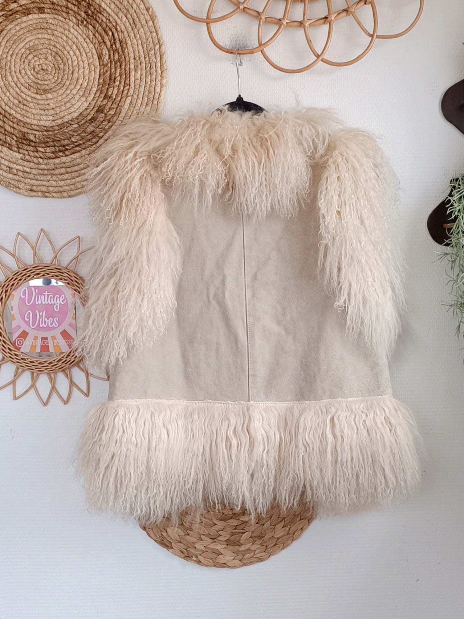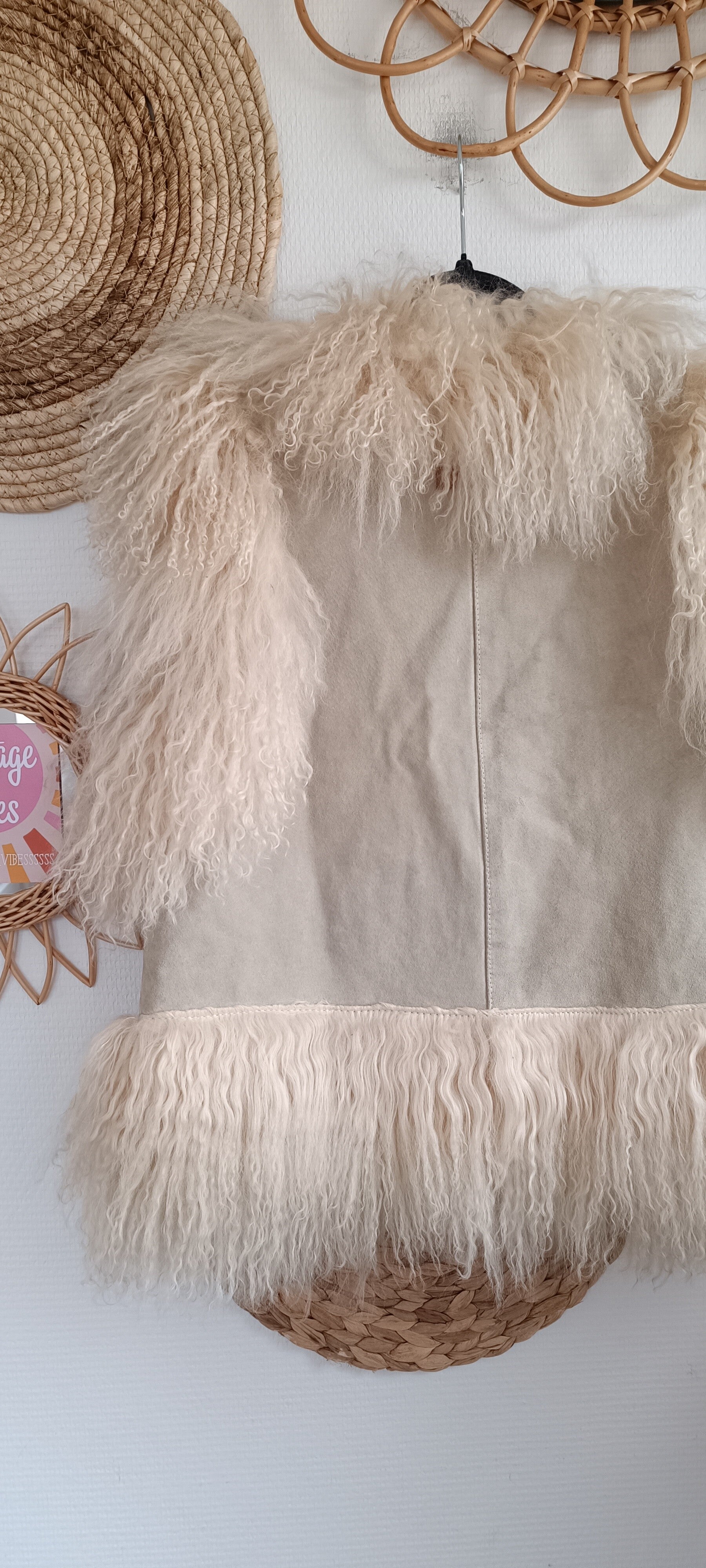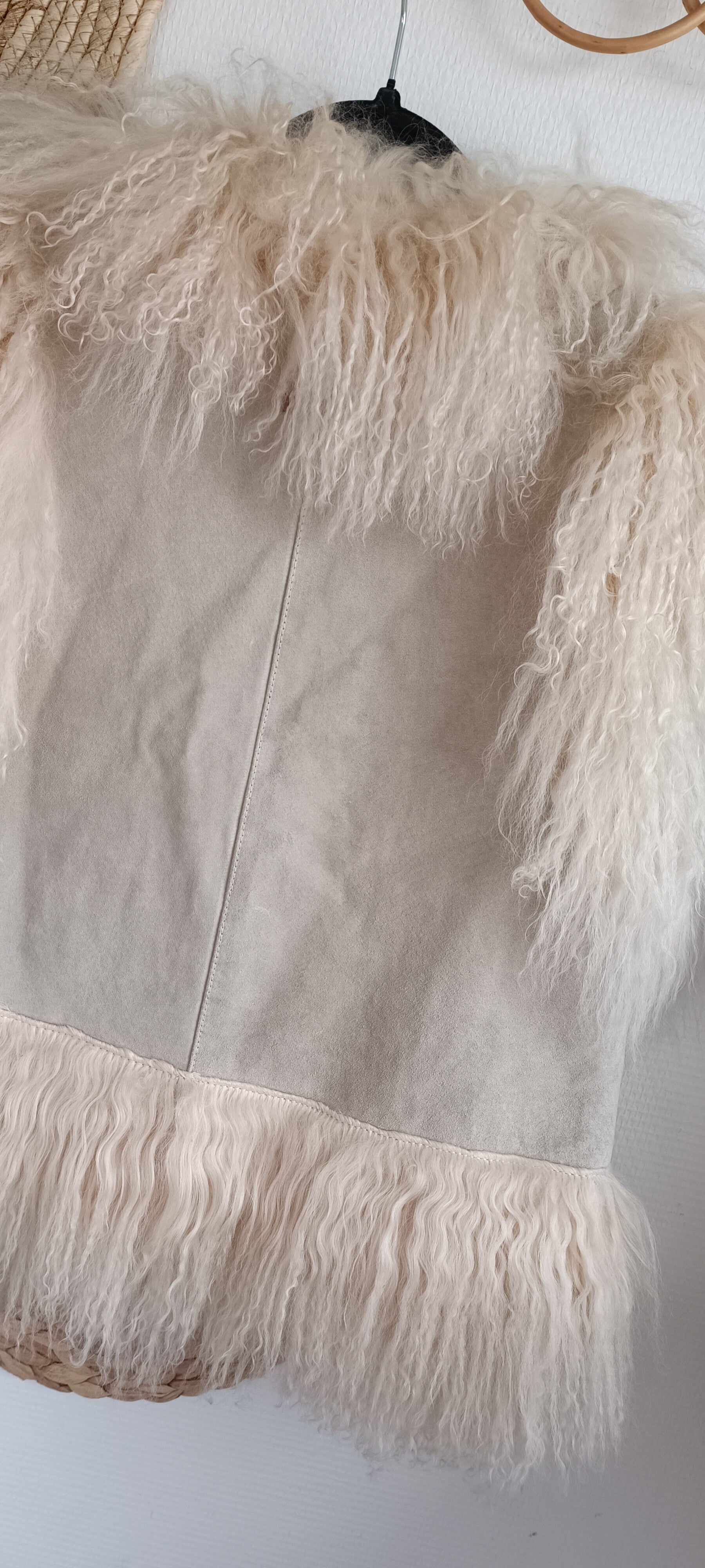 Stunning leather waistcoat from Pepe Jeans with super fluffly mongolian sheepskin trim 🐑. Inside is lined with teddy fabric. Has a inside pocket and closes with a couple of hooks.