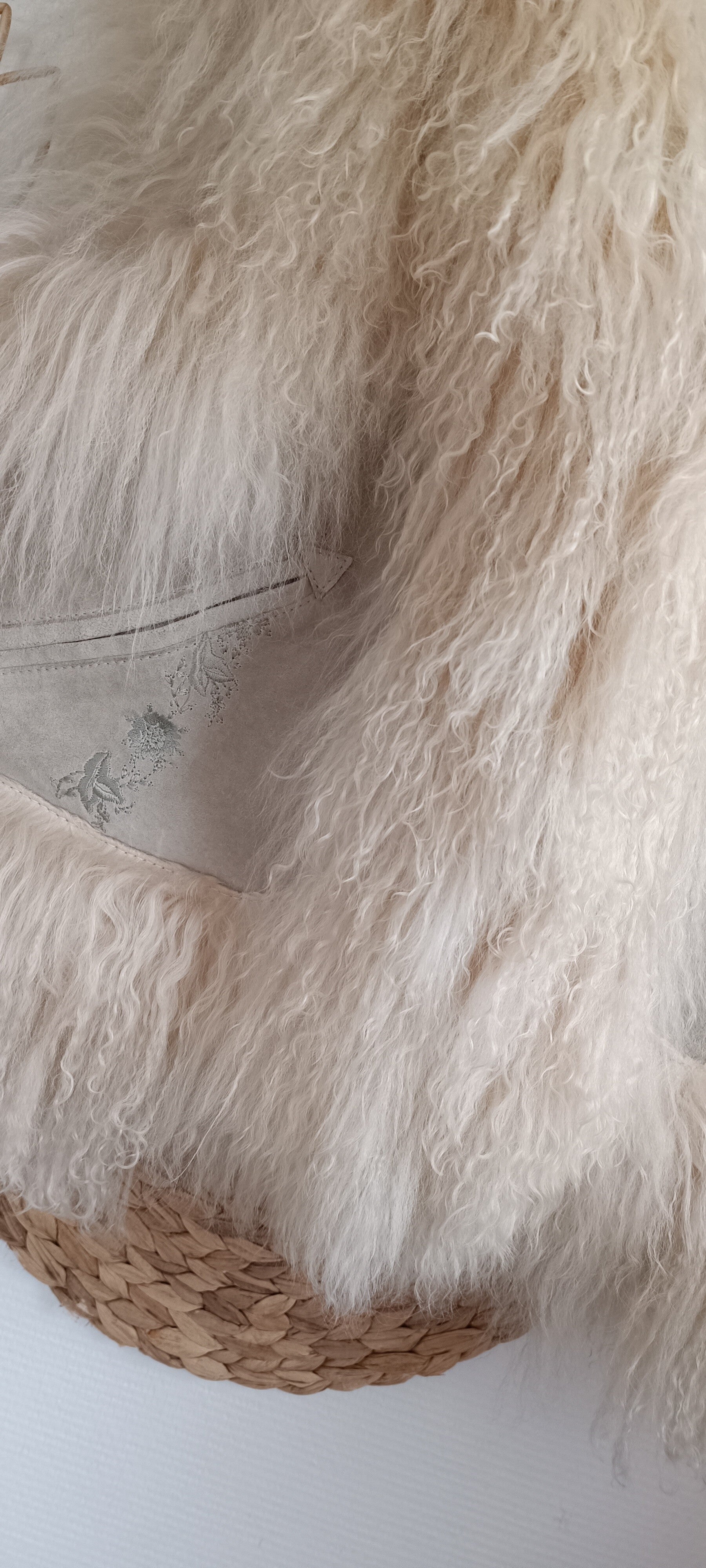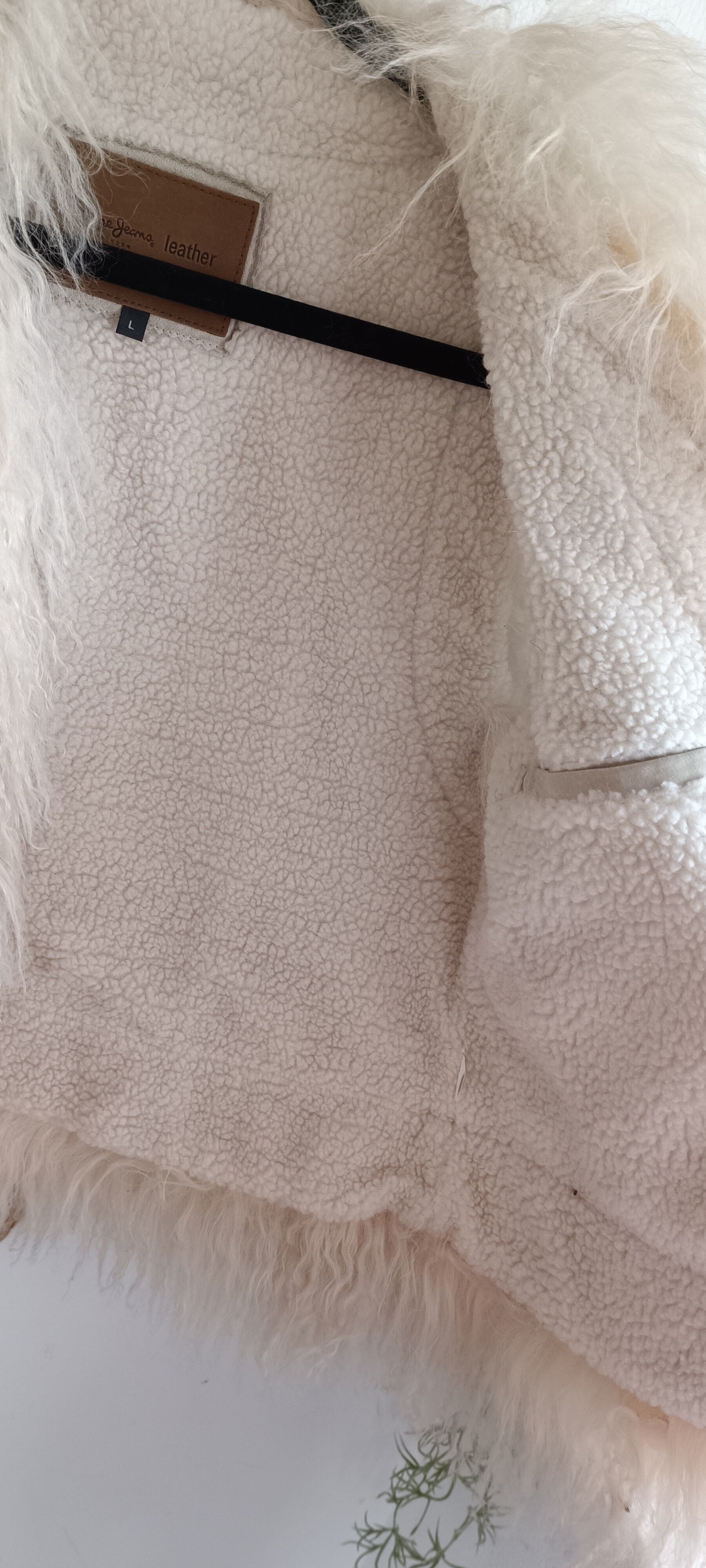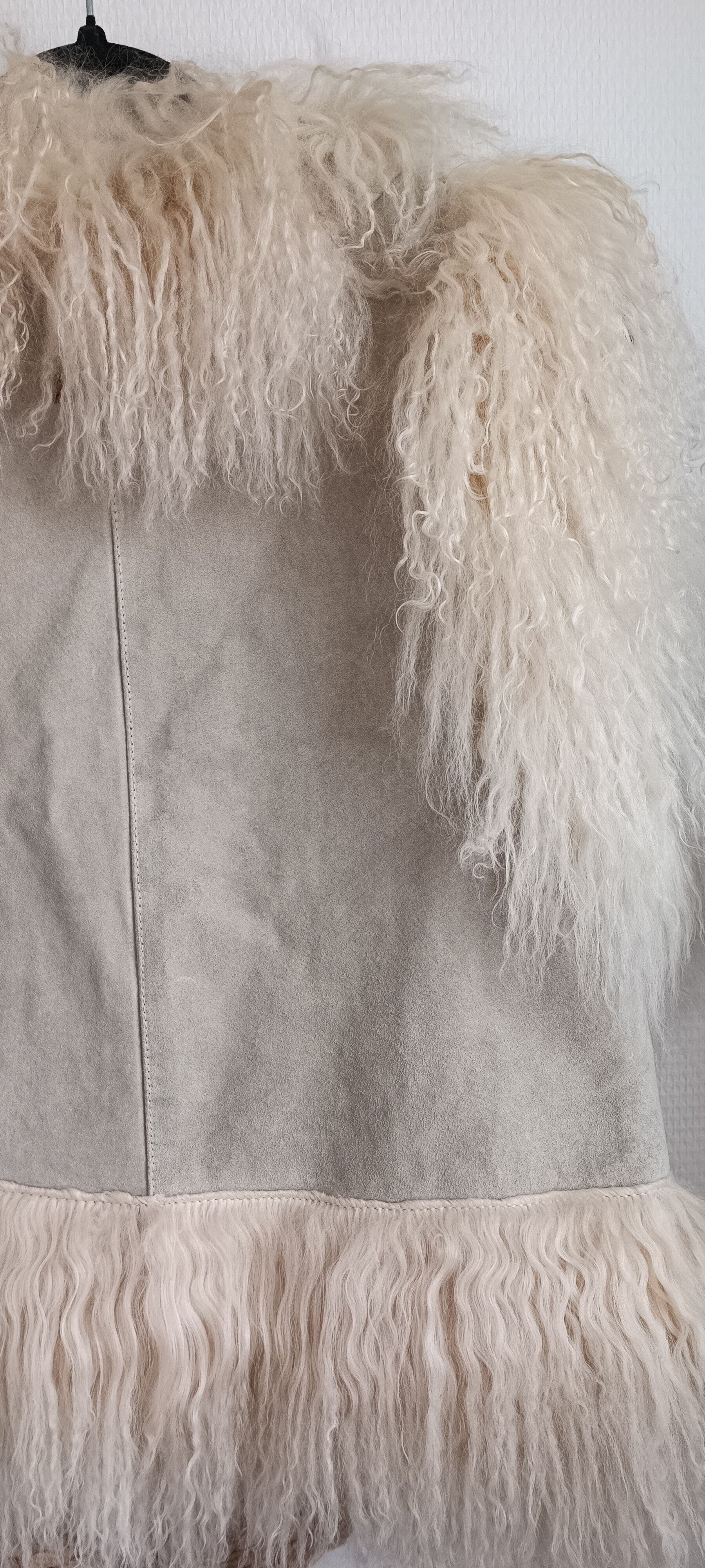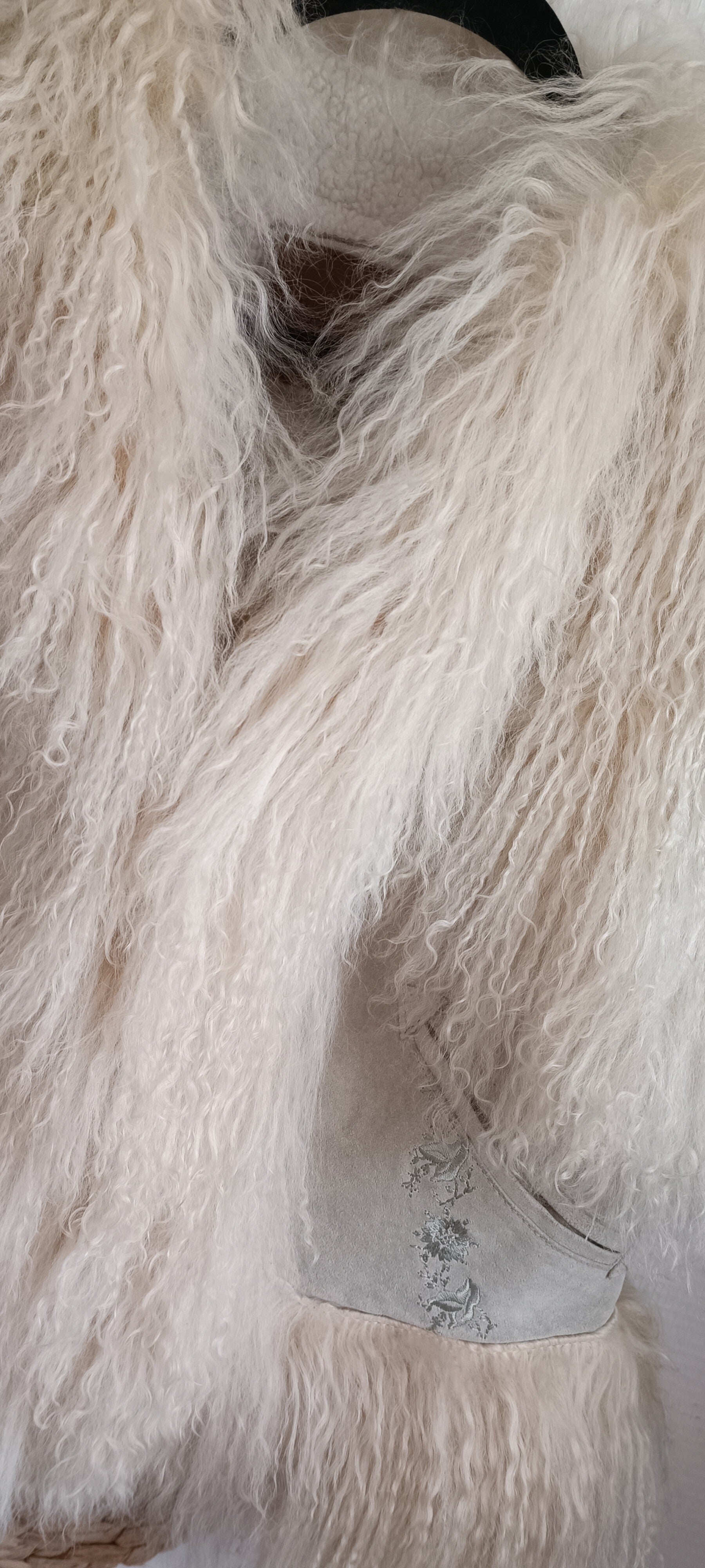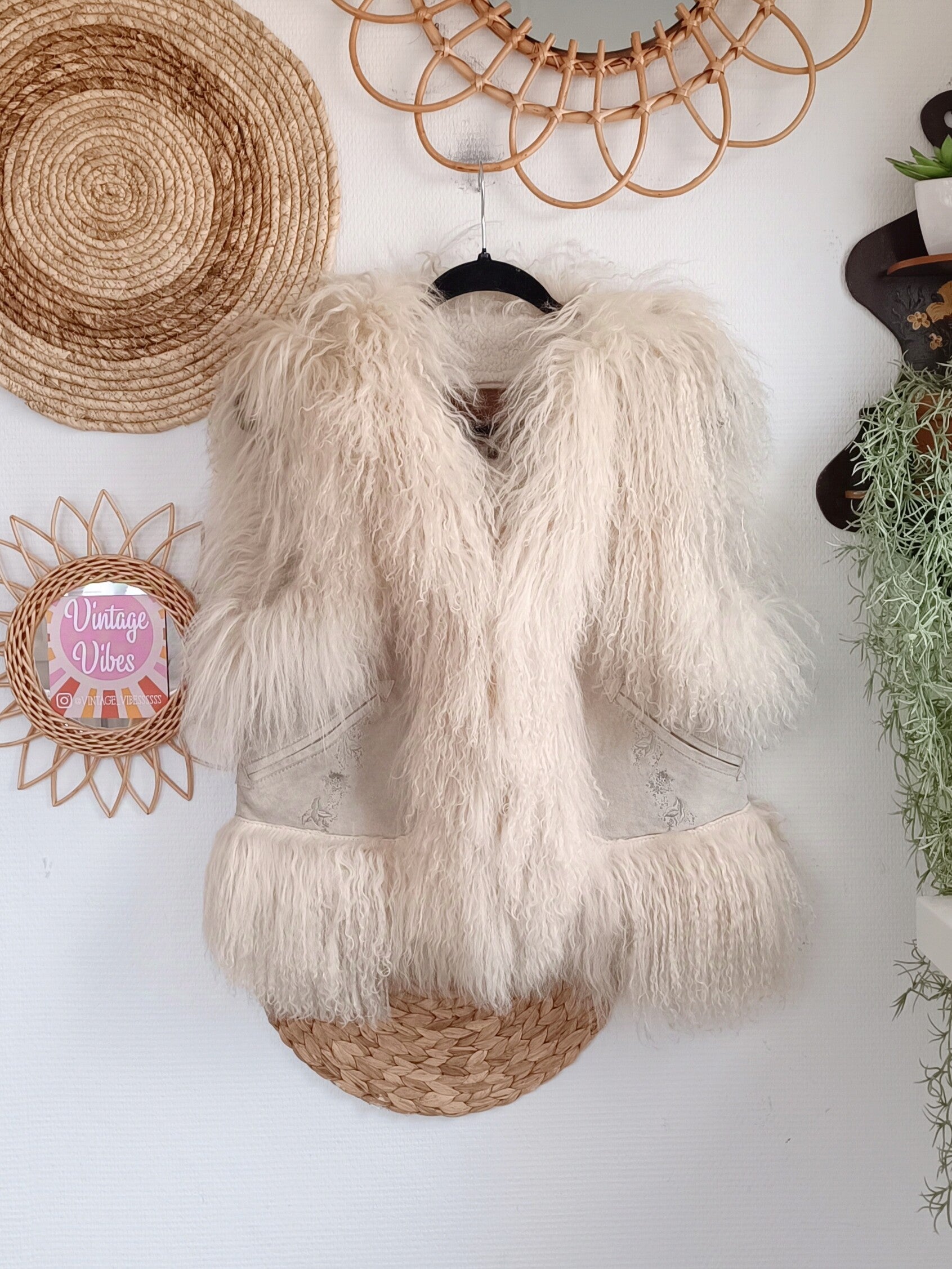 Stunning leather waistcoat from Pepe Jeans with super fluffly mongolian sheepskin trim 🐑. Inside is lined with teddy fabric. Has a inside pocket and closes with a couple of hooks.