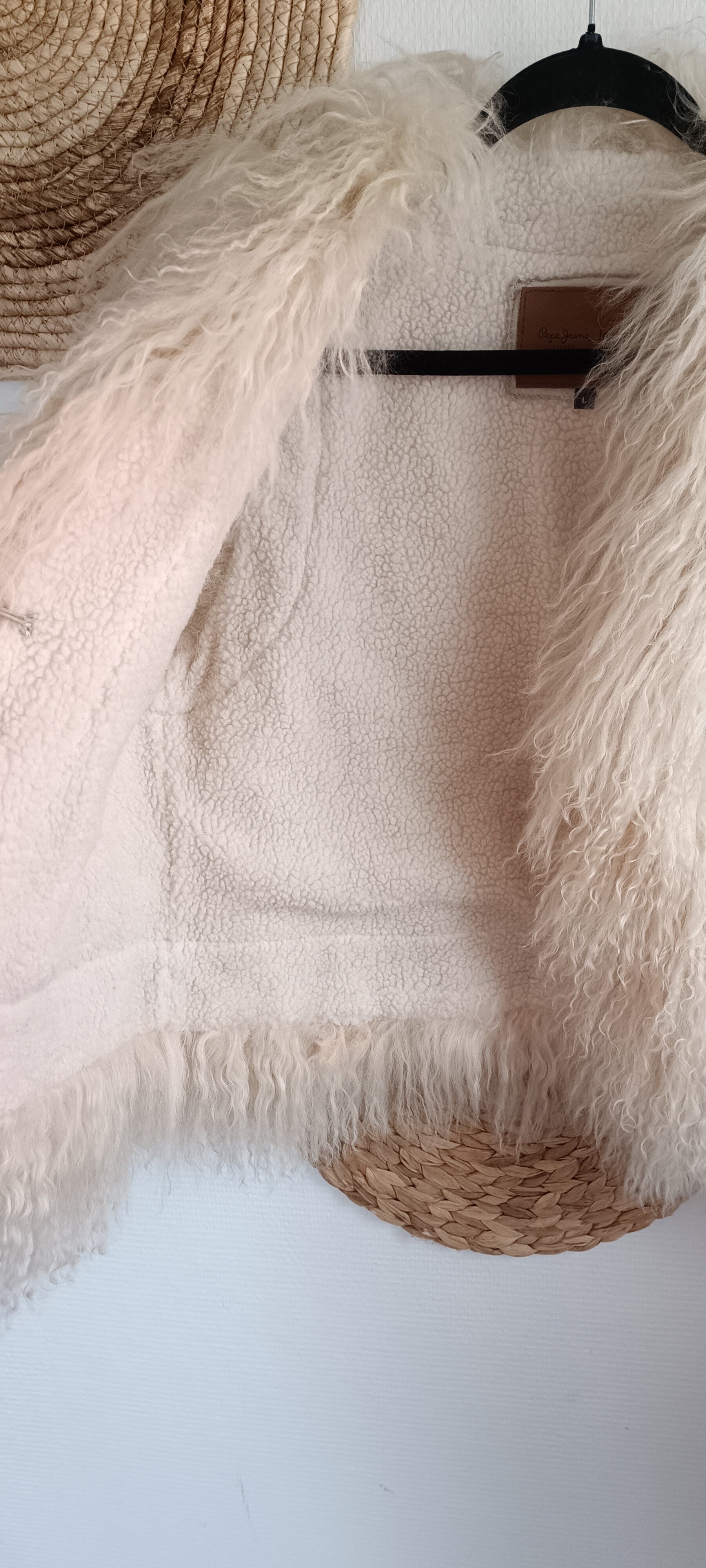 Pepe Jeans leather mongolian sheepskin waistcoat - size M/L