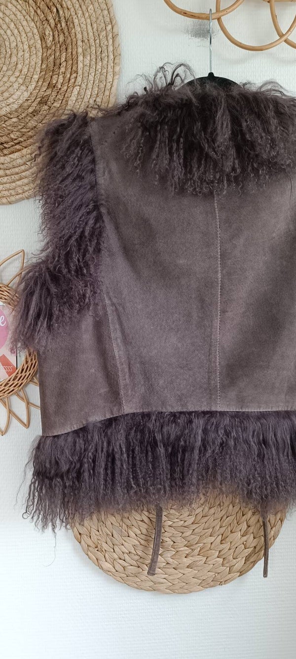 Penny Lane leather mongolian sheepskin waistcoat - size M