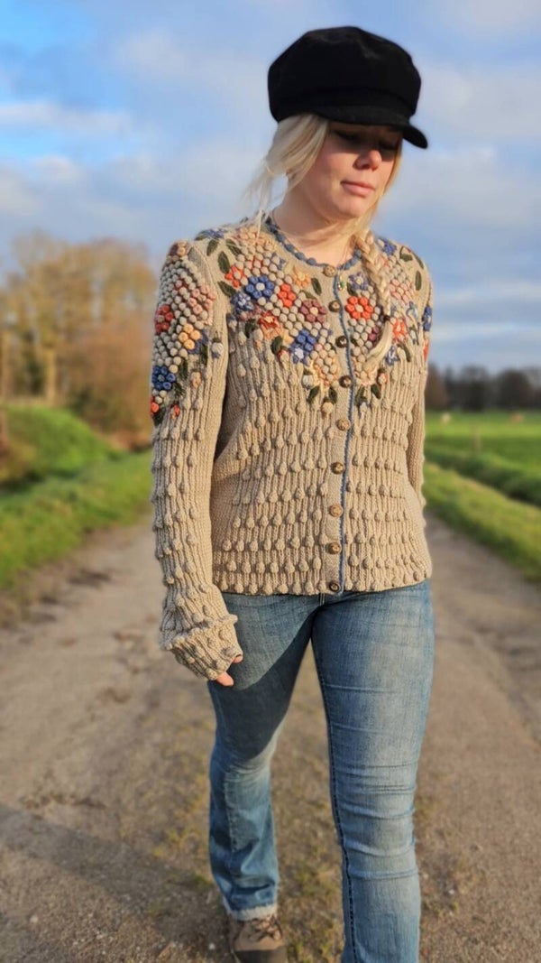 Wolkenstricker "Alice 90s" vintage handknitted embroidered cardigan - size XL