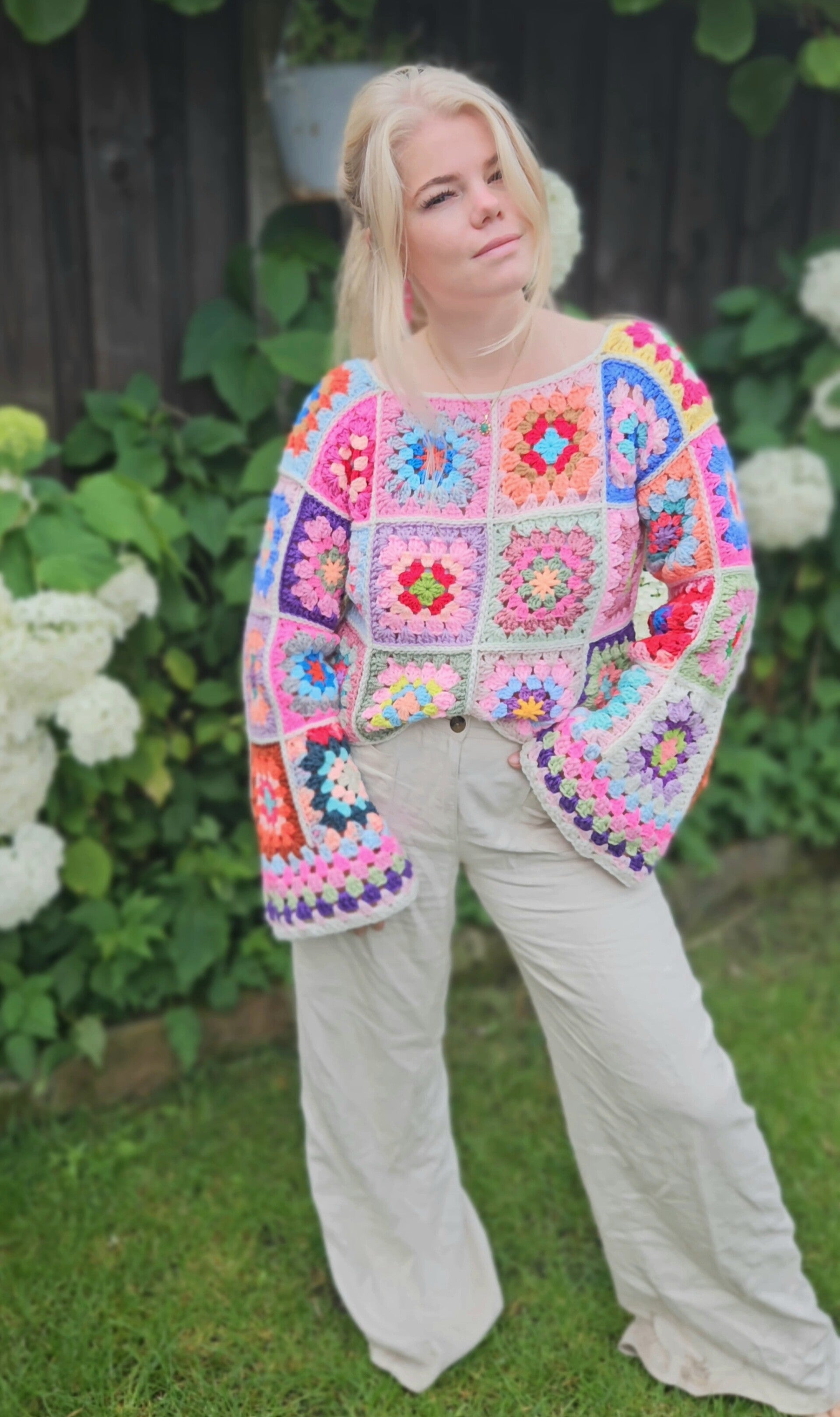 Handmade granny square crochet sweater - one size