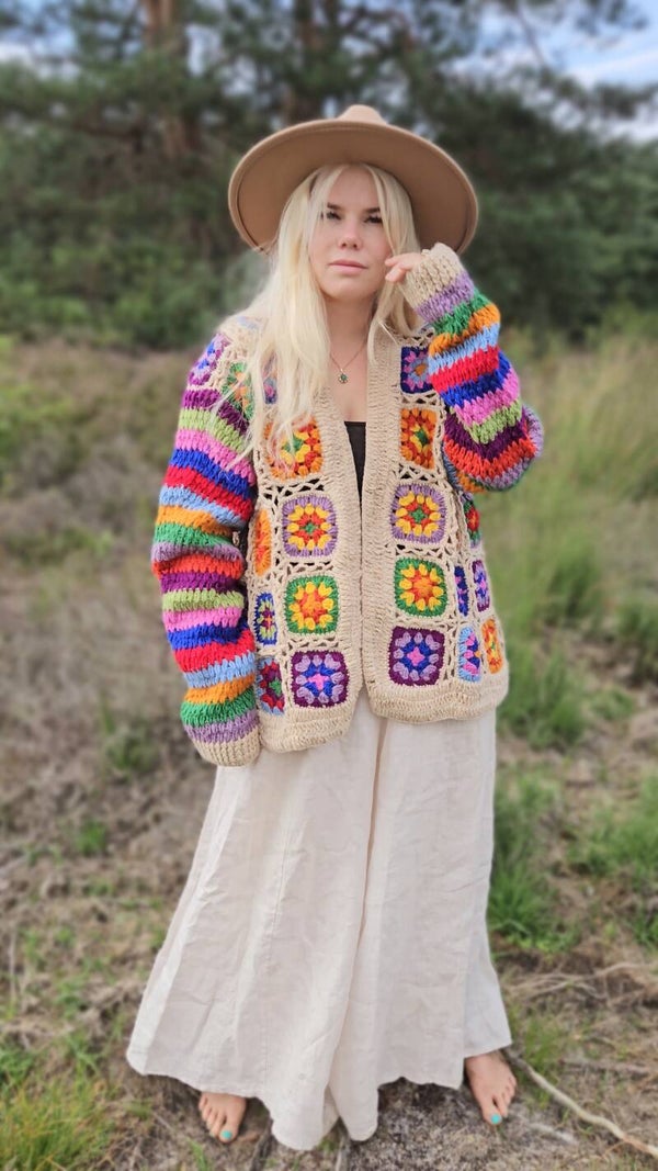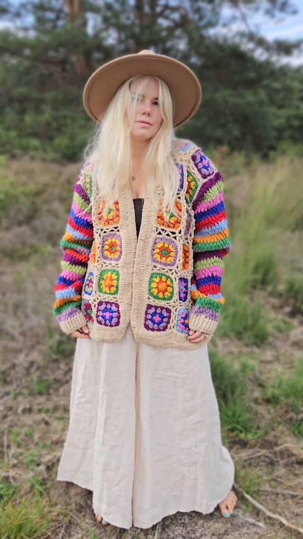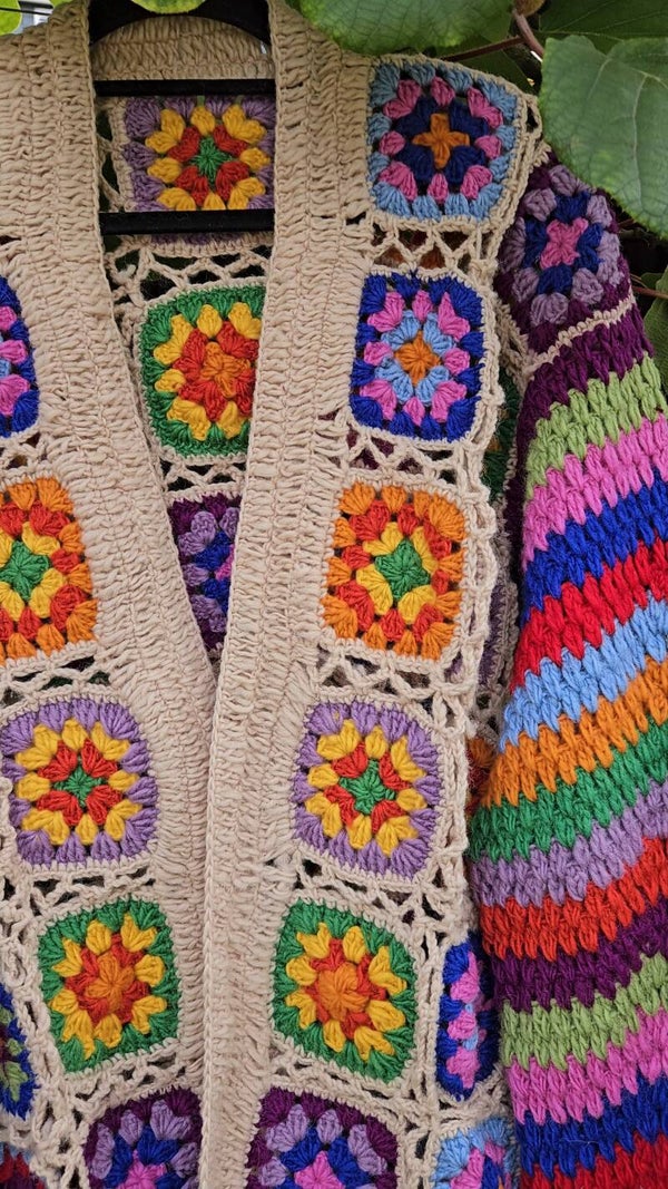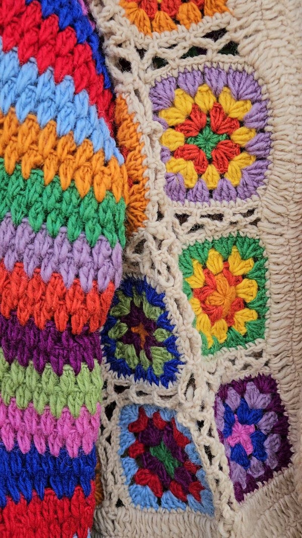 Handmade woolen Nepal granny square crochet cardigan - one size