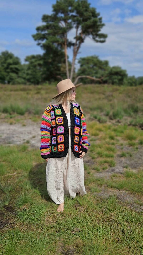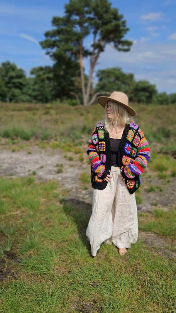 Handmade woolen Nepal granny squares crochet cardigan - one size