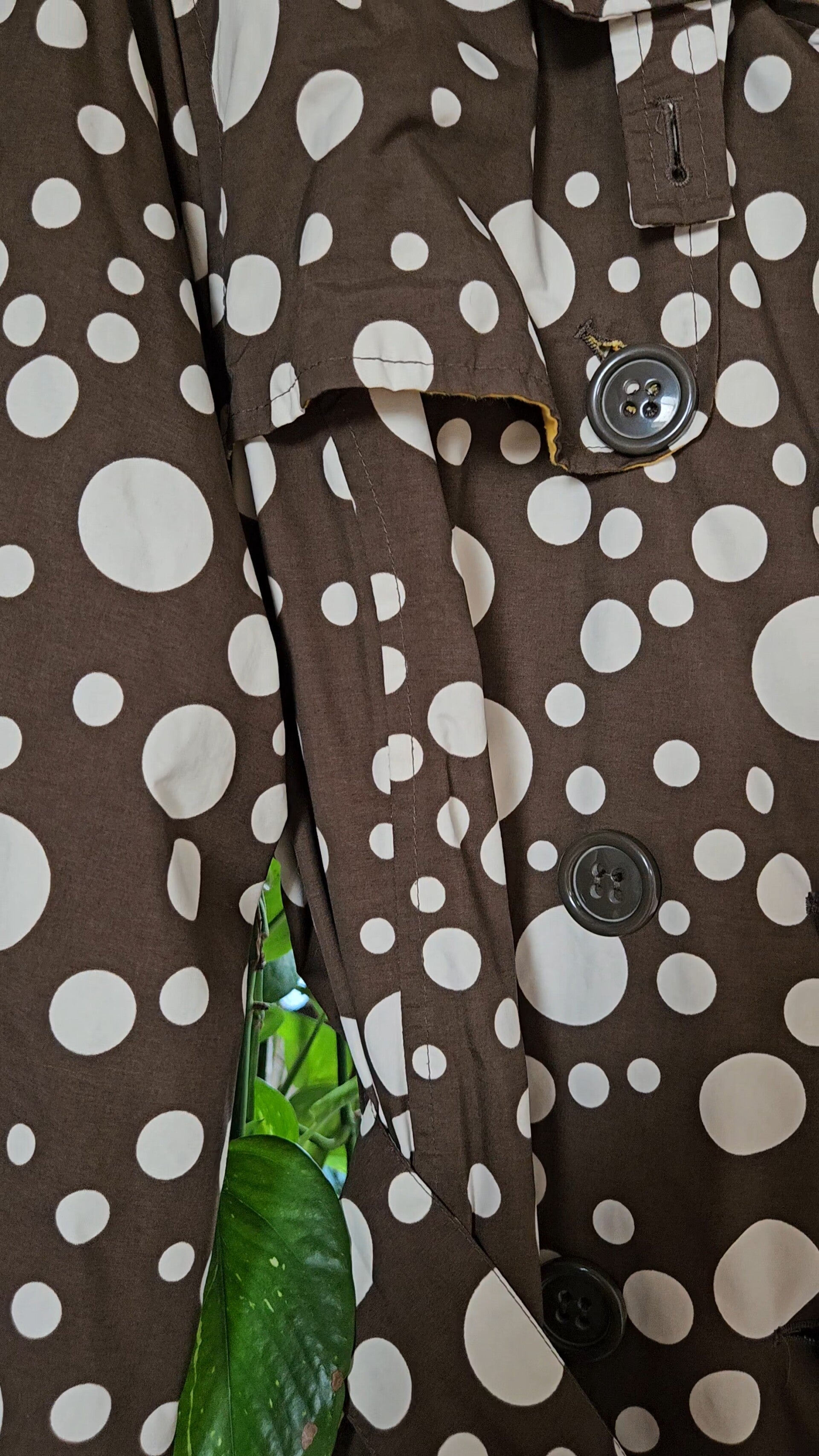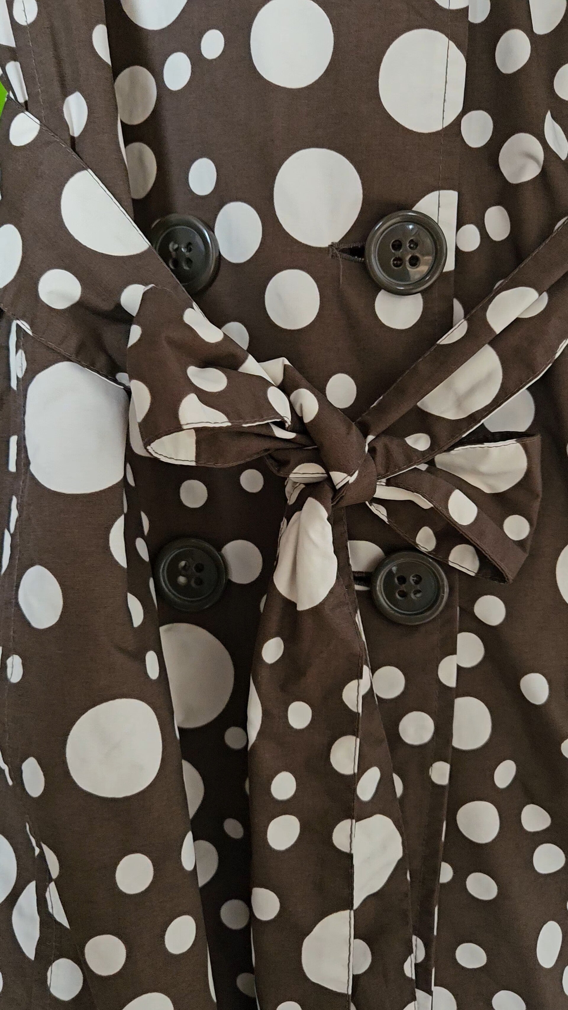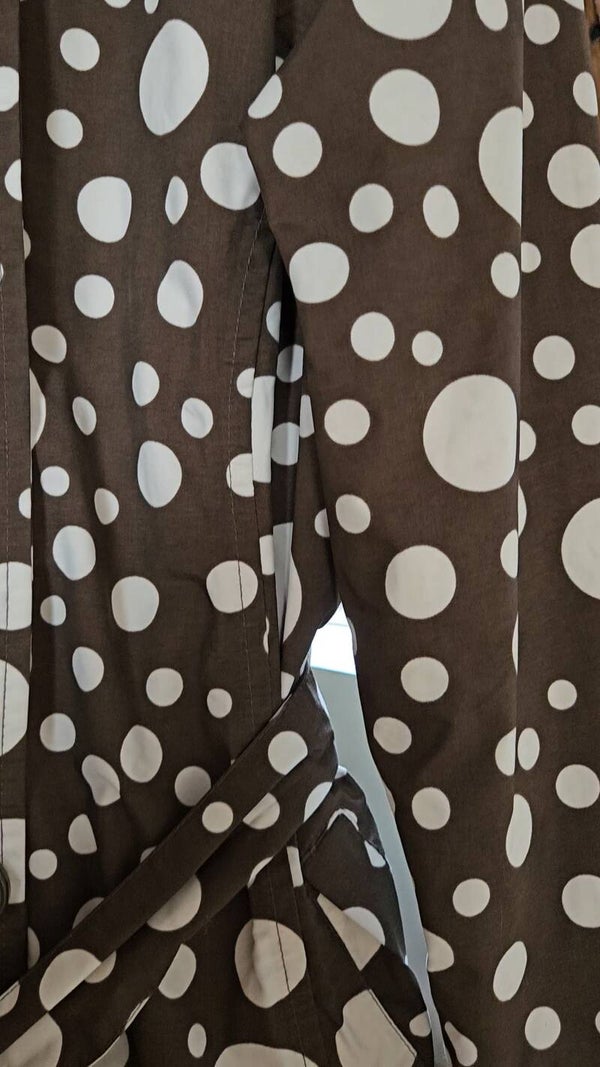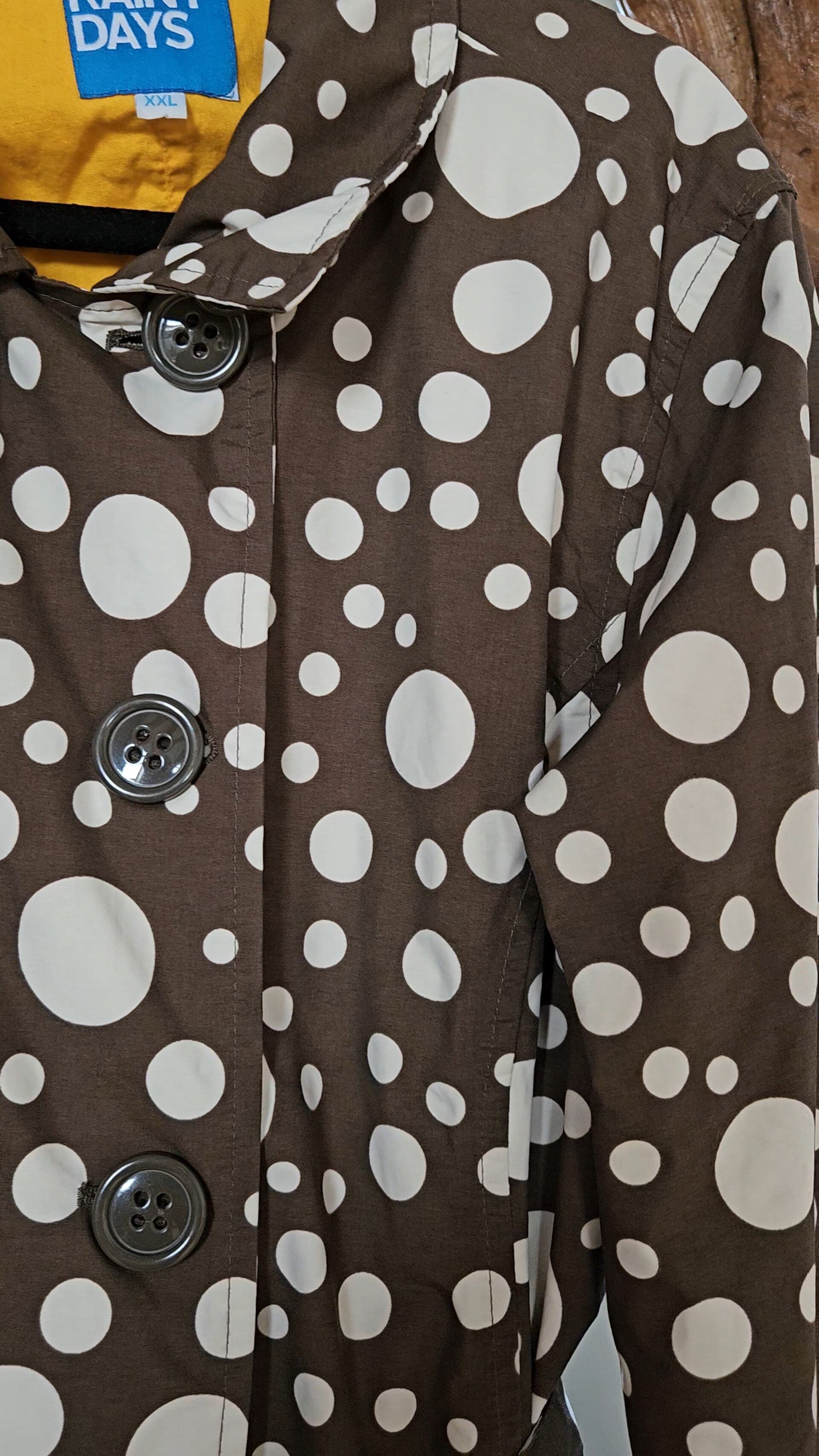 Beautiful polkadot rain/trenchcoat by the brand Happy Rainy Days 🤎