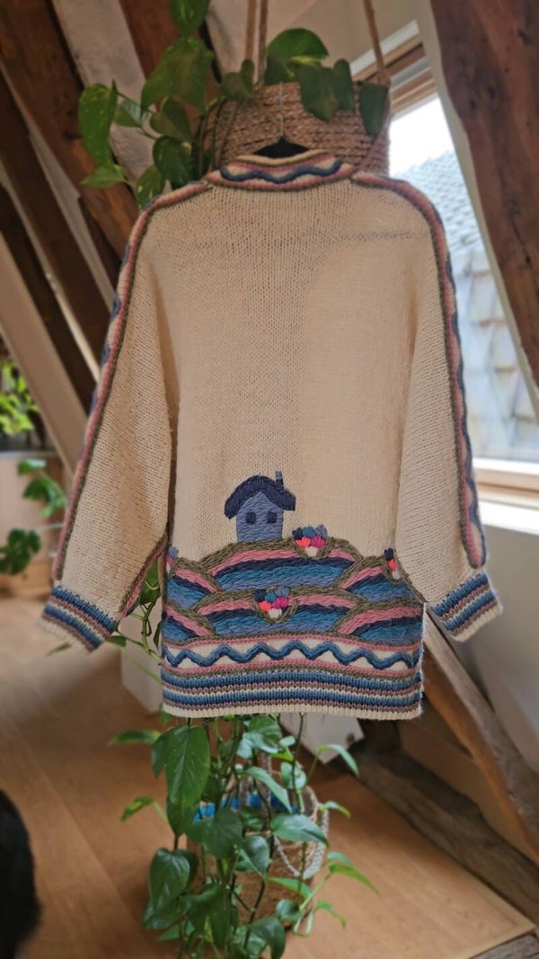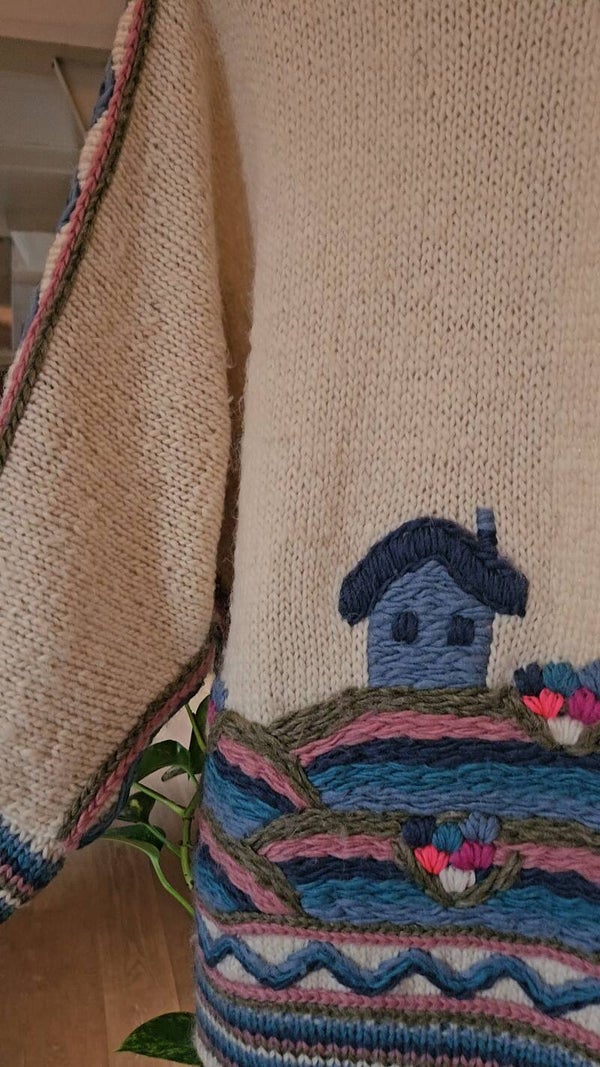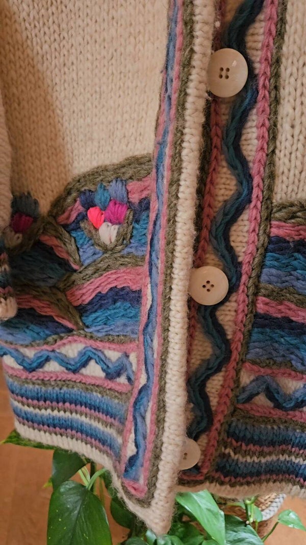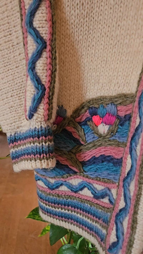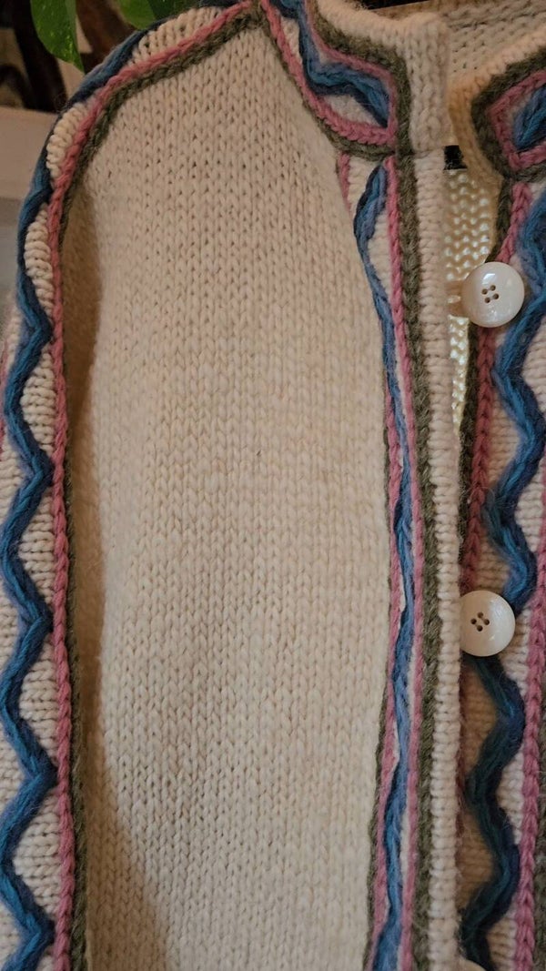 Beautiful handknitted embroidered woolen cardigan in Dobrilla style 🌈