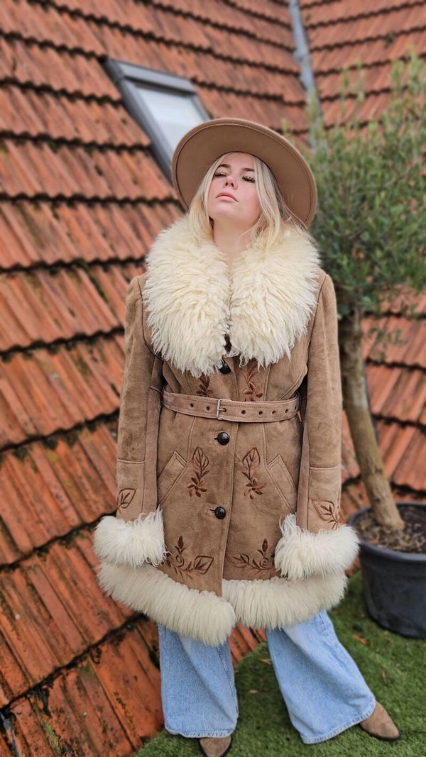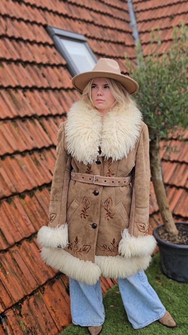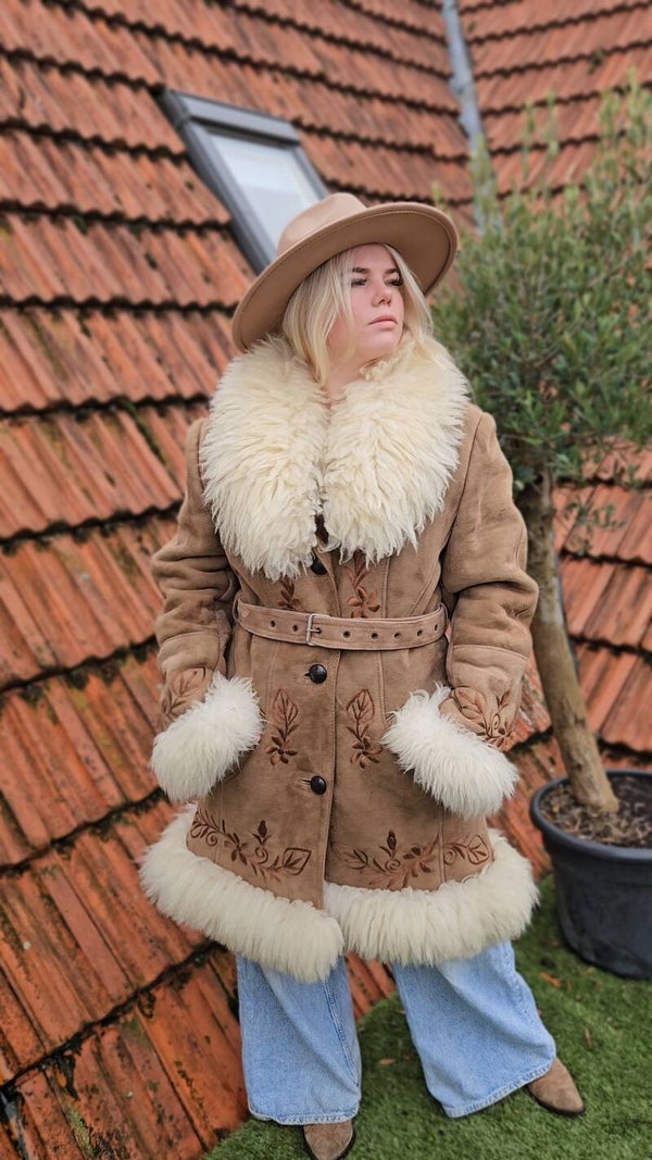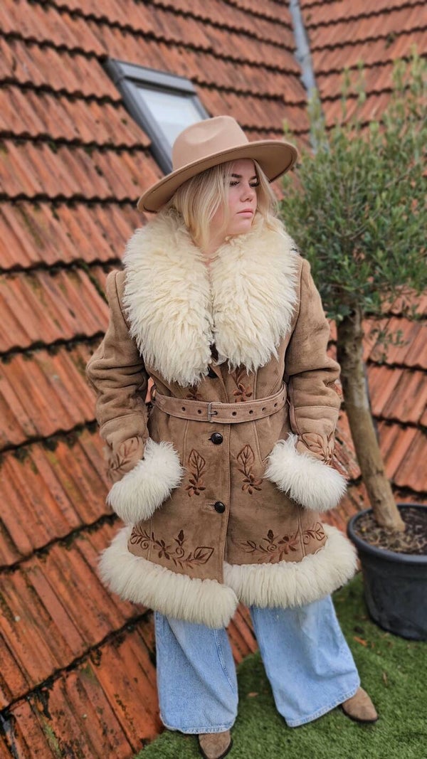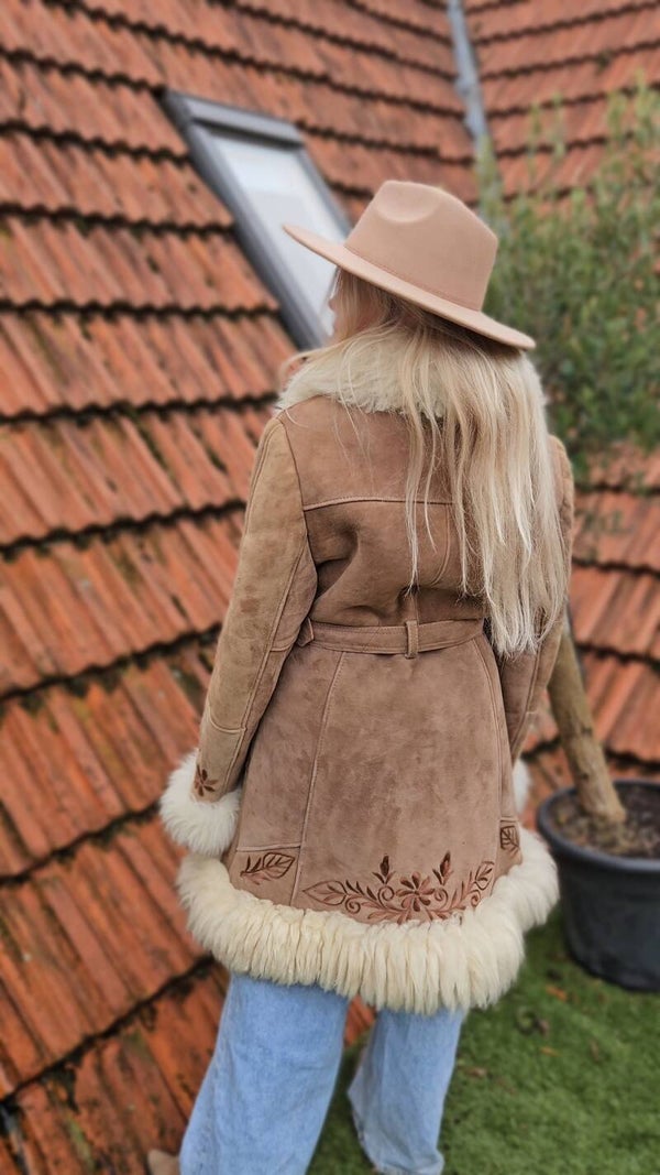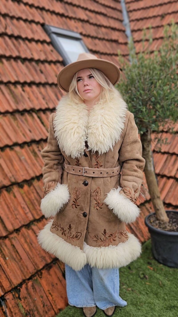Vintage 1970s Afghan suéde shearling coat - size XL