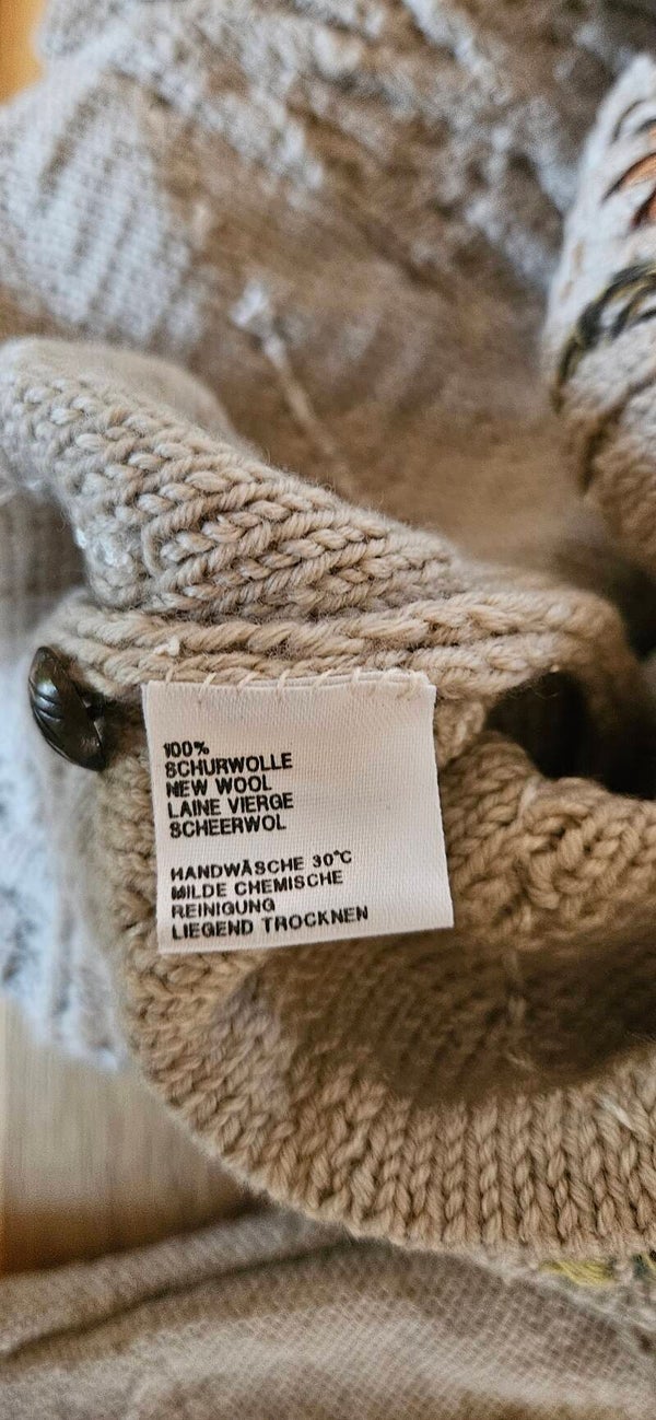 A beautiful vintage design thats edgy yet romantic. Complicated knitting pattern with amazing embroidery work. Completed with the traditional button closures with the signature W.