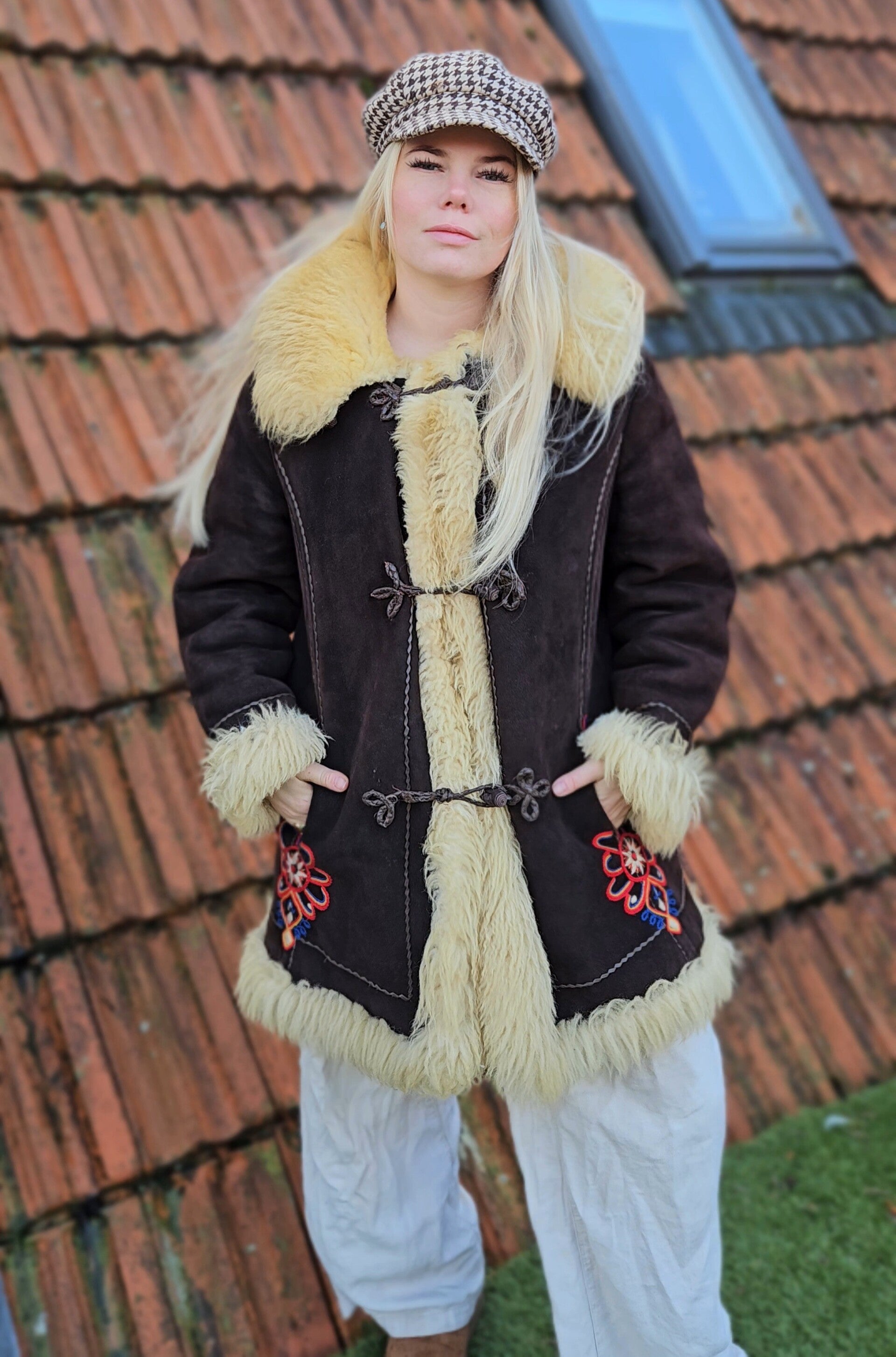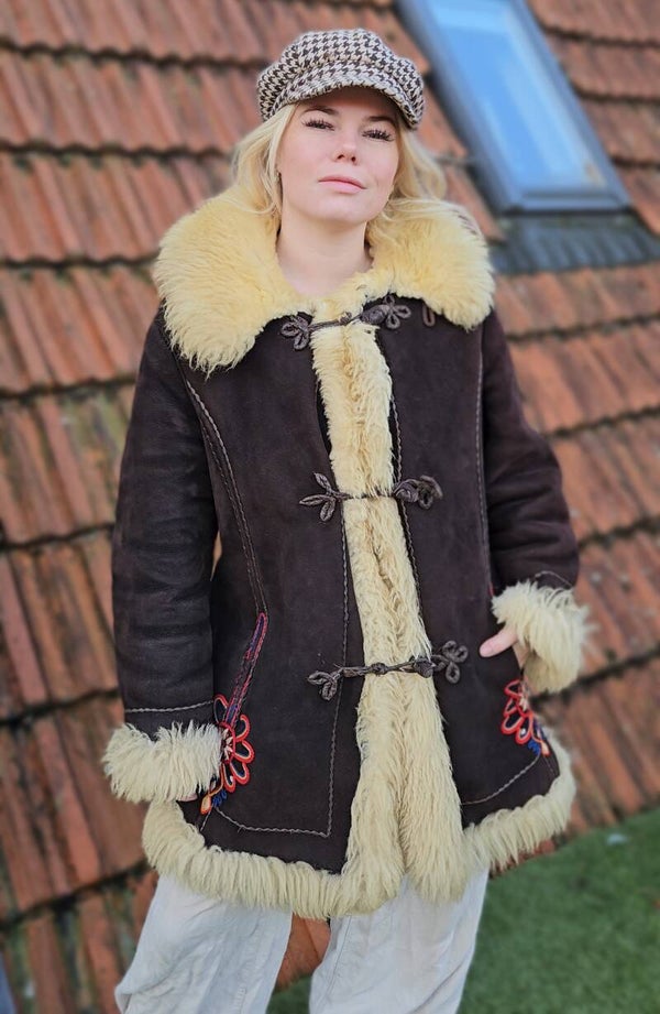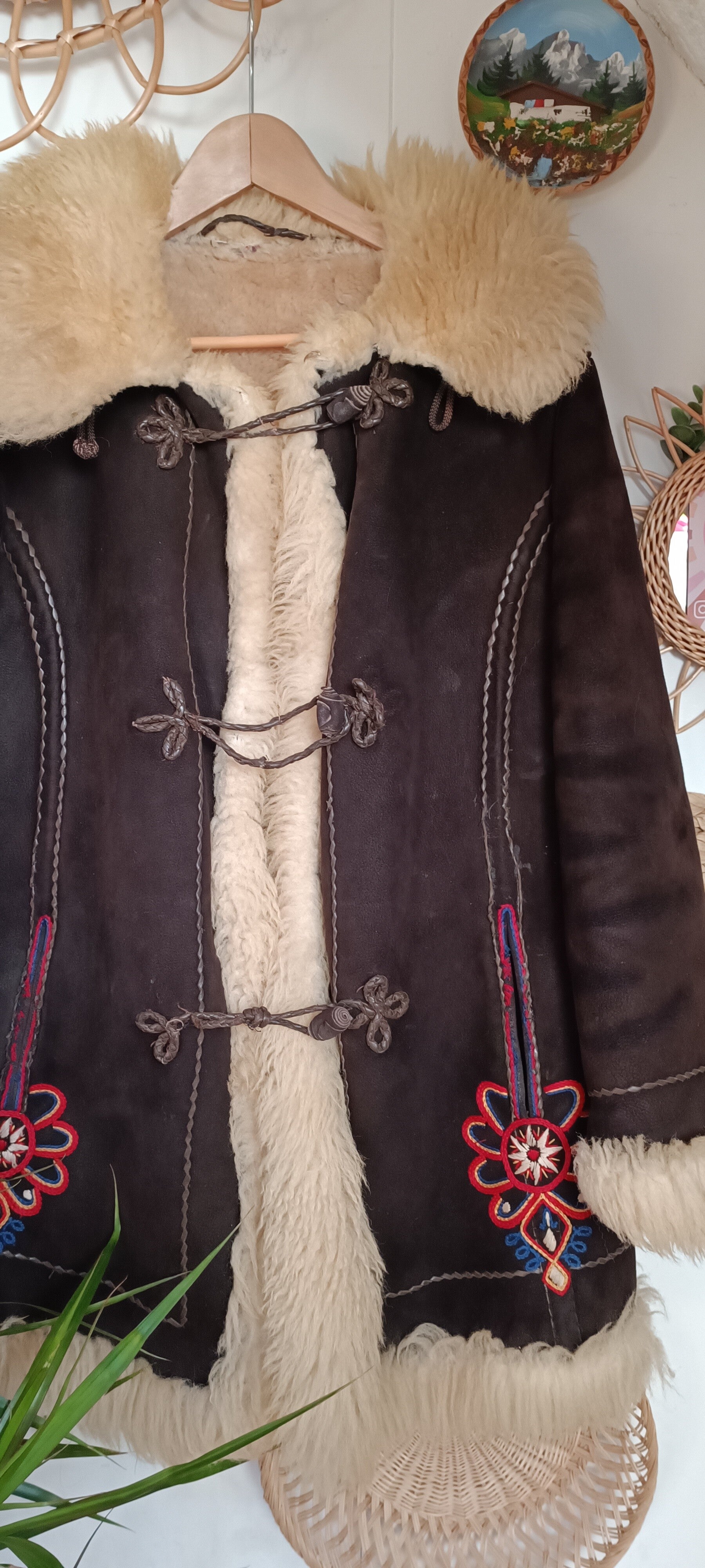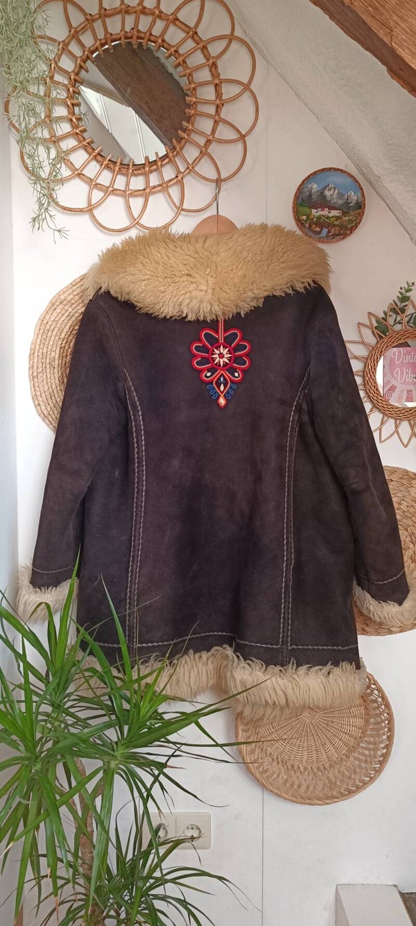 Vintage 1970s Polish traditional shearling coat - size L/XL