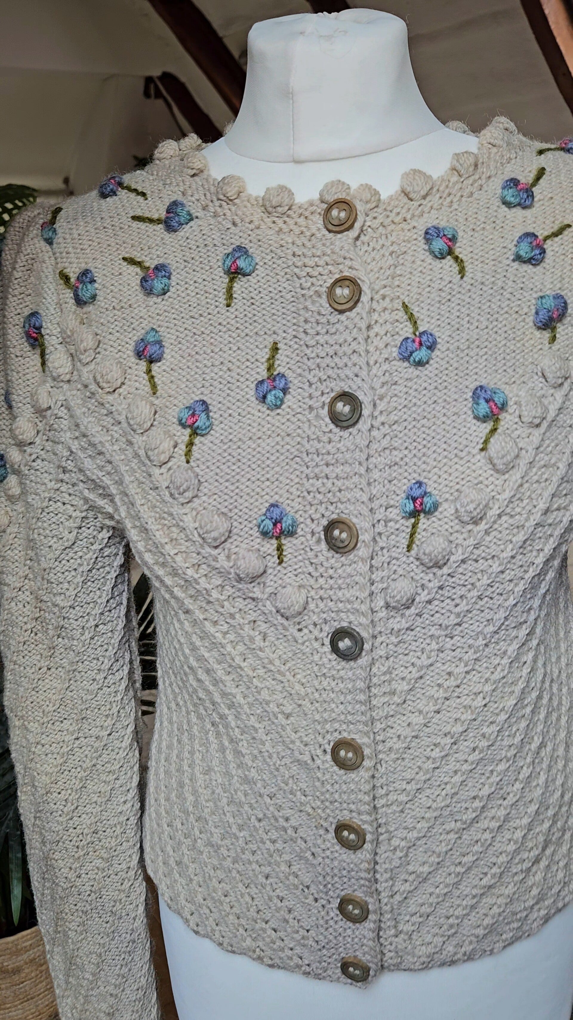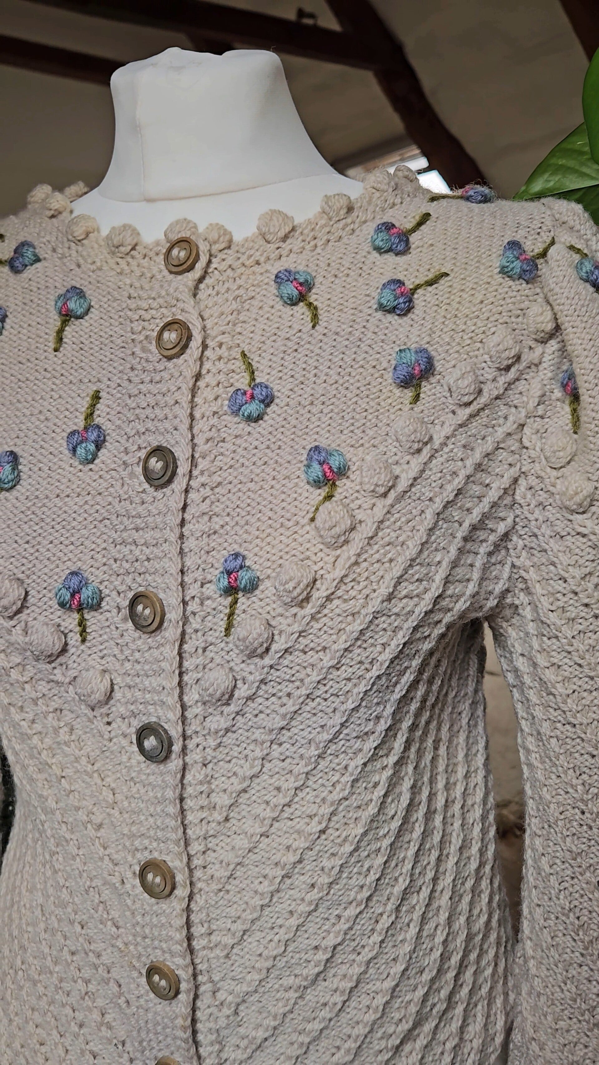 This model is is one of the first Wolkenstricker models ever made! It has a beautiful 3D design with flower embroidered neckline and cufs. A very traditional model.